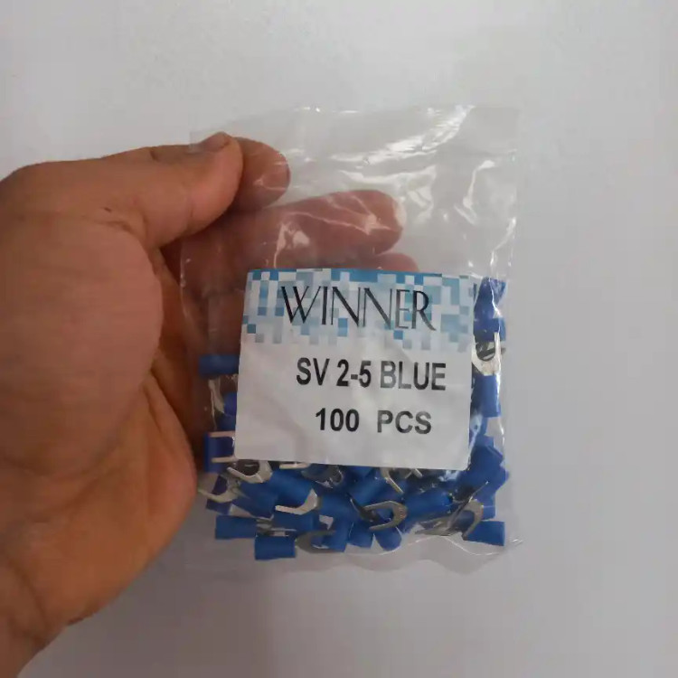 سرسیم(وایرشو) دوشاخ یو (u) شکل مدل SV 2_5 دارای ورودی سیم حداکثر 2.5 قطر قسمت پیچ خور این سرسیم دوشاخ یو شکل 5mm از جنس فلز برنج ابکاری شده با قلع است .روکش پلاستیکی رنگ زرد سرسیم های دوشاخ طبق استاندارد DIN است و تعداد سرسیم ها در پاکت 100 عدد میباشد.