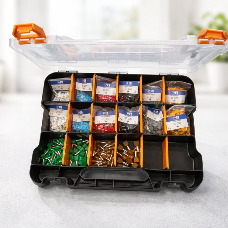جعبه ارگانایزر ۱۸ خانه وایرشو، یک مجموعه کامل و کاربردی برای برقکاران، تکنسینها و کارگاههای صنعتی است که نیاز به دسترسی سریع و منظم به انواع وایرشو دارند. این جعبه بهصورت کیفمانند و قابل حمل طراحی شده و داخل آن وایرشوهای تک و دوبل از سایز ۰.۵ تا ۱۰ میلیمتر بر اساس میزان مصرف، بهصورت کاملاً اصولی چیدمان شدهاند.